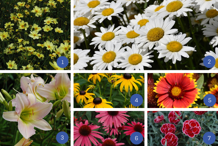 - Leucanthemum (Shasta Daisy) — blooms June – September