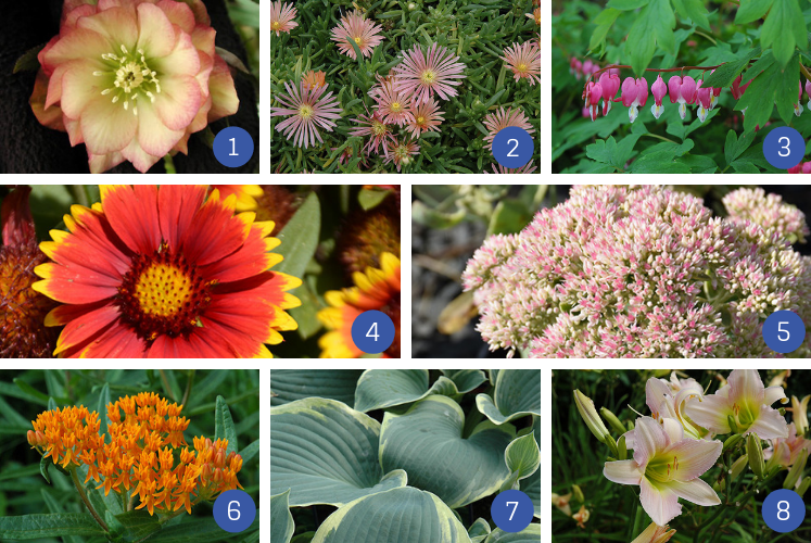 Choosing a mixture of early blooming and late-blooming perennials, tall perennials and ground cover perennials, as well as perennials that grow in sun and shade will result in a visually stunning landscape that blooms year after year.