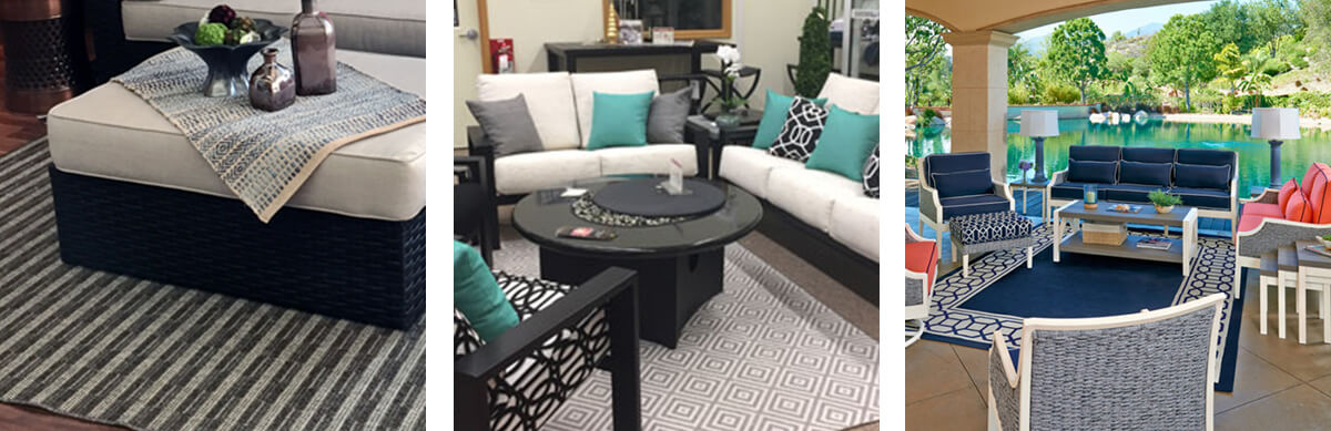 Design from the ground up with a durable and eye-catching outdoor rug. For small spaces, we recommend a simple patterned rug in a mid-range color. Lighter colored rugs are likely to get dirty fast, and darker rugs will make the space seem small and cramped. Choosing a color in the middle with a simple pattern will add appeal to a plain concrete or wood surface.