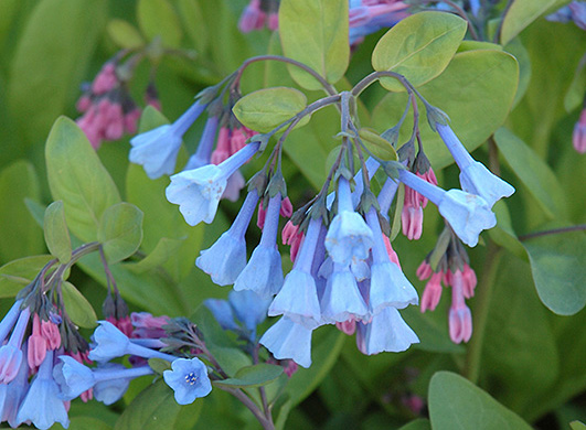 - Virginia bluebells (Mertensia virginica) — best for shady locations, early blooming