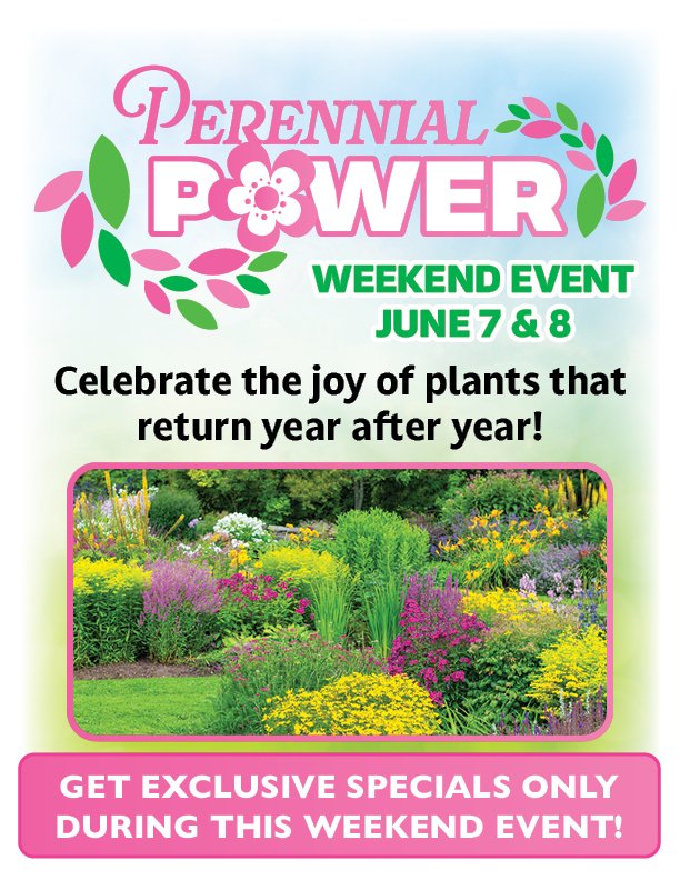Join us for our Perennial Power weekend! Celebrate the plants that return year after year, bringing continuous color and texture to your landscape.