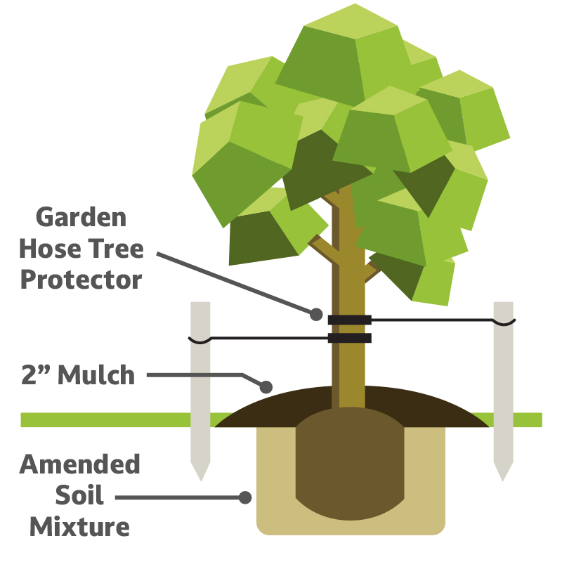 - Water root ball and surrounding soil thoroughly to settle soil and remove air pockets. Follow Watering Guidelines provided.